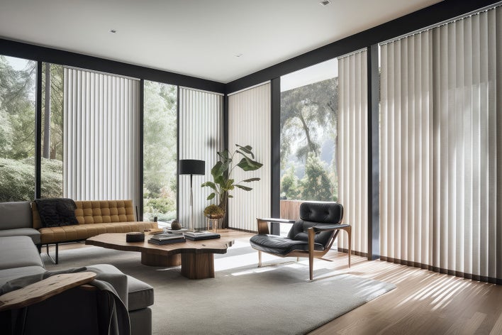 Vertical blinds are a timeless choice for sliding glass doors. They offer easy access to the doors, and their adjustable slats make them ideal for optimizing natural light and privacy in your space. With a wide range of materials, colors, and patterns available, installing vertical blinds allows you to find blinds that perfectly complement your décor.